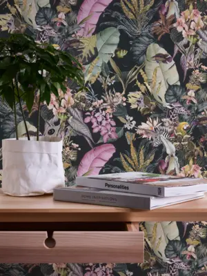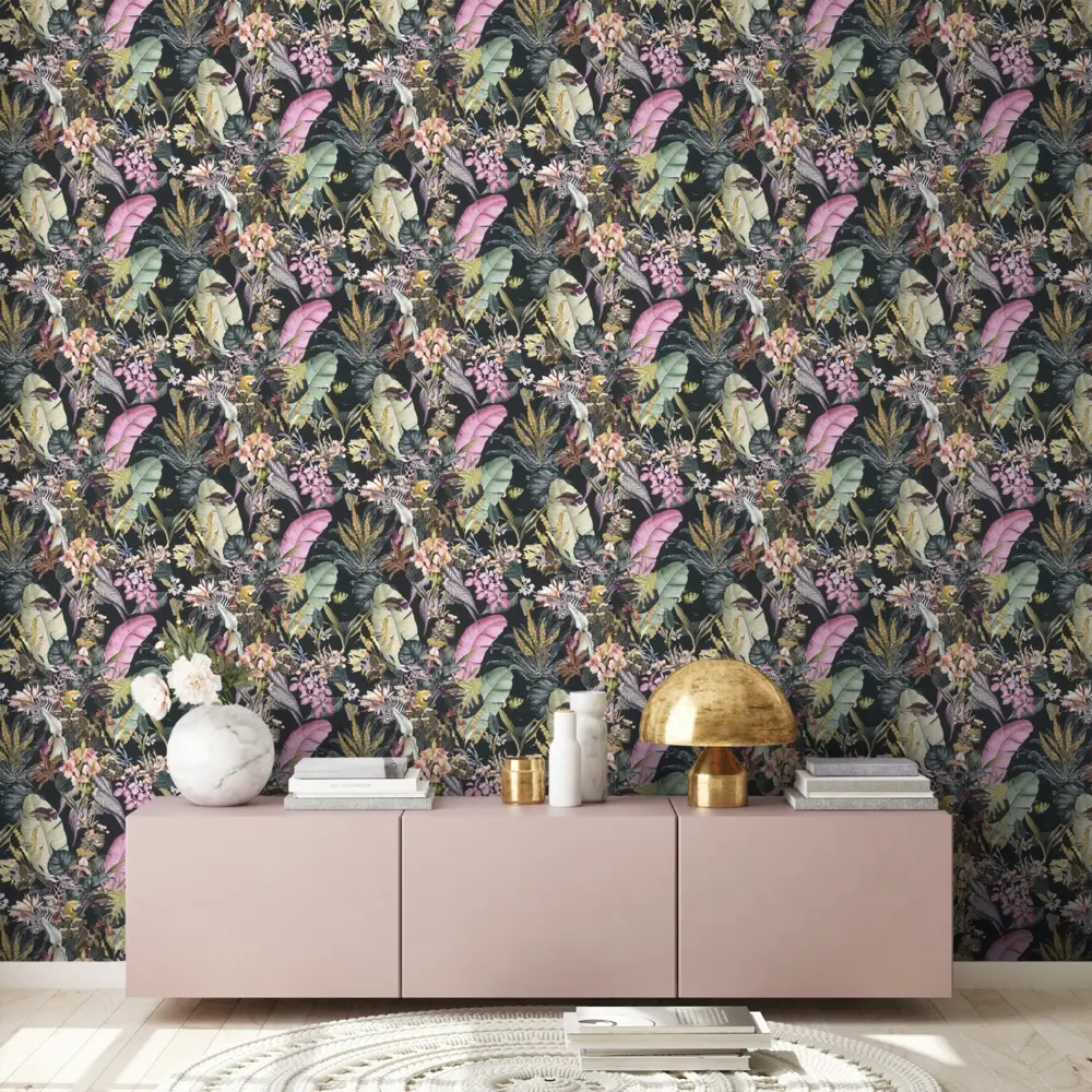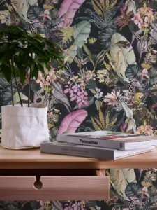 Die A.S. Création Dream Flowery Vliestapete 381761 verbindet modernes Design mit einer floralen Optik in Schwarz, Rosa, Grün und Gelb. Das Muster mit harmonisch angeordneten Blumenmotiven sorgt für ein stilvolles Ambiente und setzt farbenfrohe Akzente an Wand und Decke.
