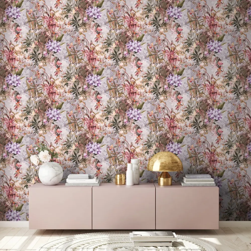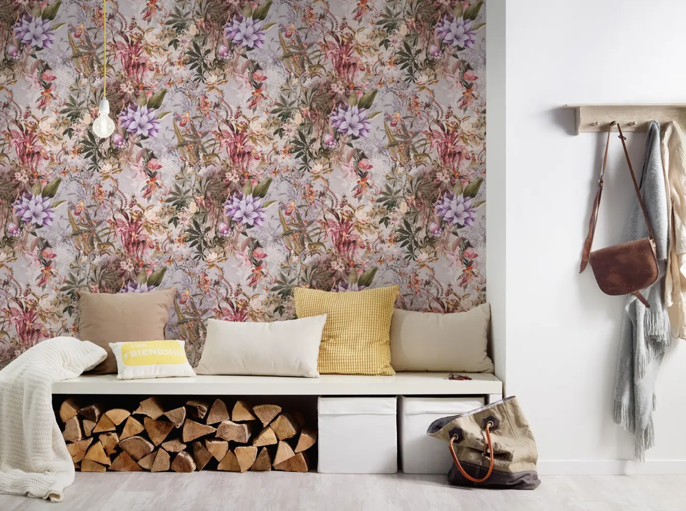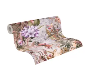 Verleihen Sie Ihren Räumen einen Hauch von Lebendigkeit und stilvoller Natürlichkeit mit der Vliestapete 381773 aus der Kollektion Dream Flowery von A.S. Création. Das florale Design in ausdrucksstarken Lilatönen wird von Akzenten in Beige, Grün und Orange begleitet und sorgt für ein harmonisches Gesamtbild, das Wohn-, Schlaf- oder Küchenbereiche optisch aufwertet.