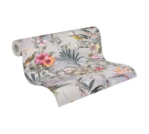 Die A.S. Création Dream Flowery Vliestapete mit der Artikelnummer 381782 setzt stilvolle und moderne Akzente für Ihre Wohnräume. Das farbenfrohe Design vereint florale Muster in Grau, Rosa, Orange und Grün und verleiht jedem Raum ein freundliches, lebendiges Ambiente. Die matte Oberfläche und die glatte Struktur sorgen für ein edles Erscheinungsbild an Wand und Decke.