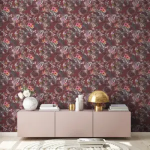 Die A.S. Création Dream Flowery Vliestapete 381785 bringt mit ihrem farbenfrohen, floralen Design eine besondere Atmosphäre in Ihre Wohnräume. Die Tapete verbindet stilvolle Motive in Rot, Grün, Rosa und Orange zu einem lebendigen Gesamtbild, das sofort ins Auge fällt und jedem Raum Frische verleiht.