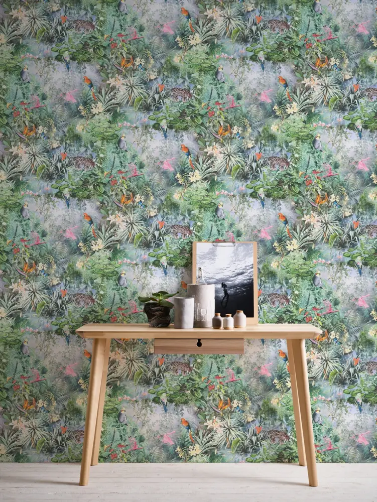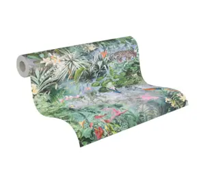 Die Vliestapete Dream Flowery 381792 von A.S. Création verbindet ein stilvolles florales Design mit modernen Farbakzenten in Grün, Blau, Braun und Rosa. Mit ihrer matten Oberfläche und der glatten Struktur sorgt sie für eine angenehme Atmosphäre in Wohn-, Schlaf- und Küchenbereichen.
