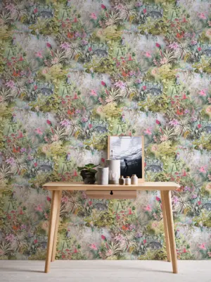 Die A.S. Création Dream Flowery Vliestapete 381793 bringt mit ihrer farbenfrohen Kombination aus Grün-, Rosa- und Grautönen ein frisches, florales Ambiente in Ihre Räumlichkeiten. Das harmonische Blumenmuster verleiht Ihrem Wohn-, Schlaf- oder Küchenbereich einen modernen, lebendigen Charakter und zaubert eine natürliche Wohlfühlatmosphäre.