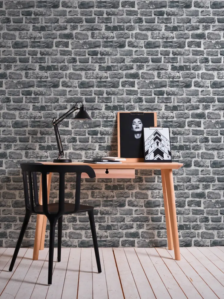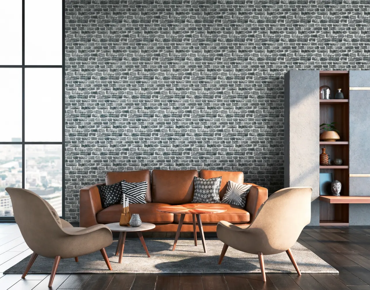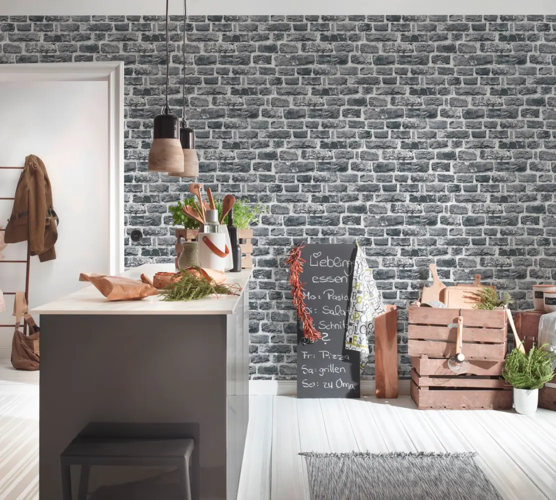 Ob im Wohnzimmer, Schlafzimmer, Büro oder in der Küche – diese Vinyltapete setzt stilvolle Akzente und schafft ein modernes Wohngefühl. Die Kombination aus grauen und schwarzen Farbtönen sorgt dabei für eine dezente und dennoch beeindruckende Raumwirkung.