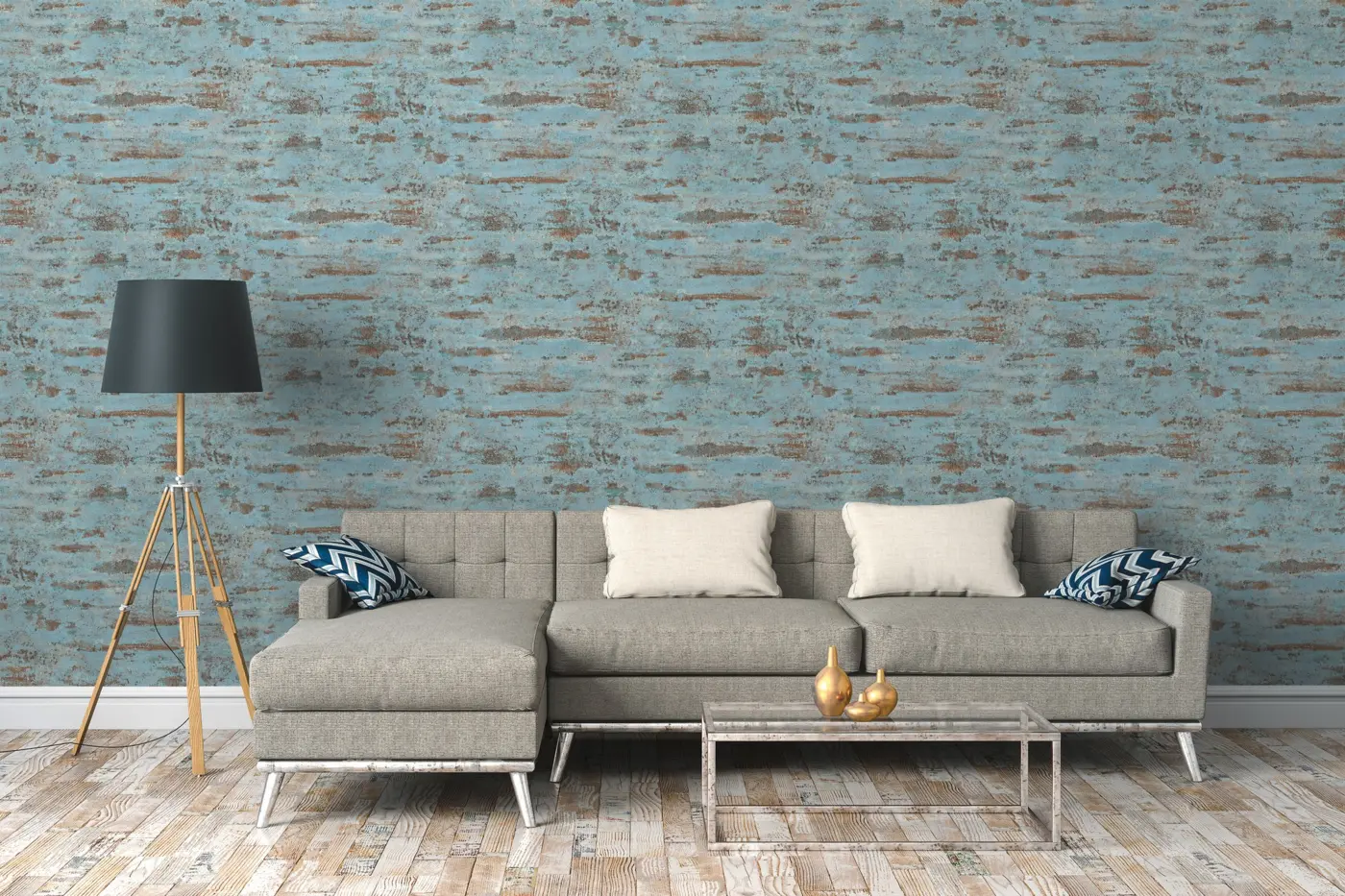 A.S. Création Elements 2 Vinyltapete 374153 – Stilvolle Unifarbene Tapete in Blau, Braun und Orange