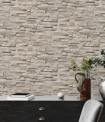 Diese Vinyltapete zeichnet sich zudem durch ihre gute Lichtbeständigkeit und Scheuerbeständigkeit aus – für langlebige und pflegeleichte Wände mit stilvoller Steinoptik.