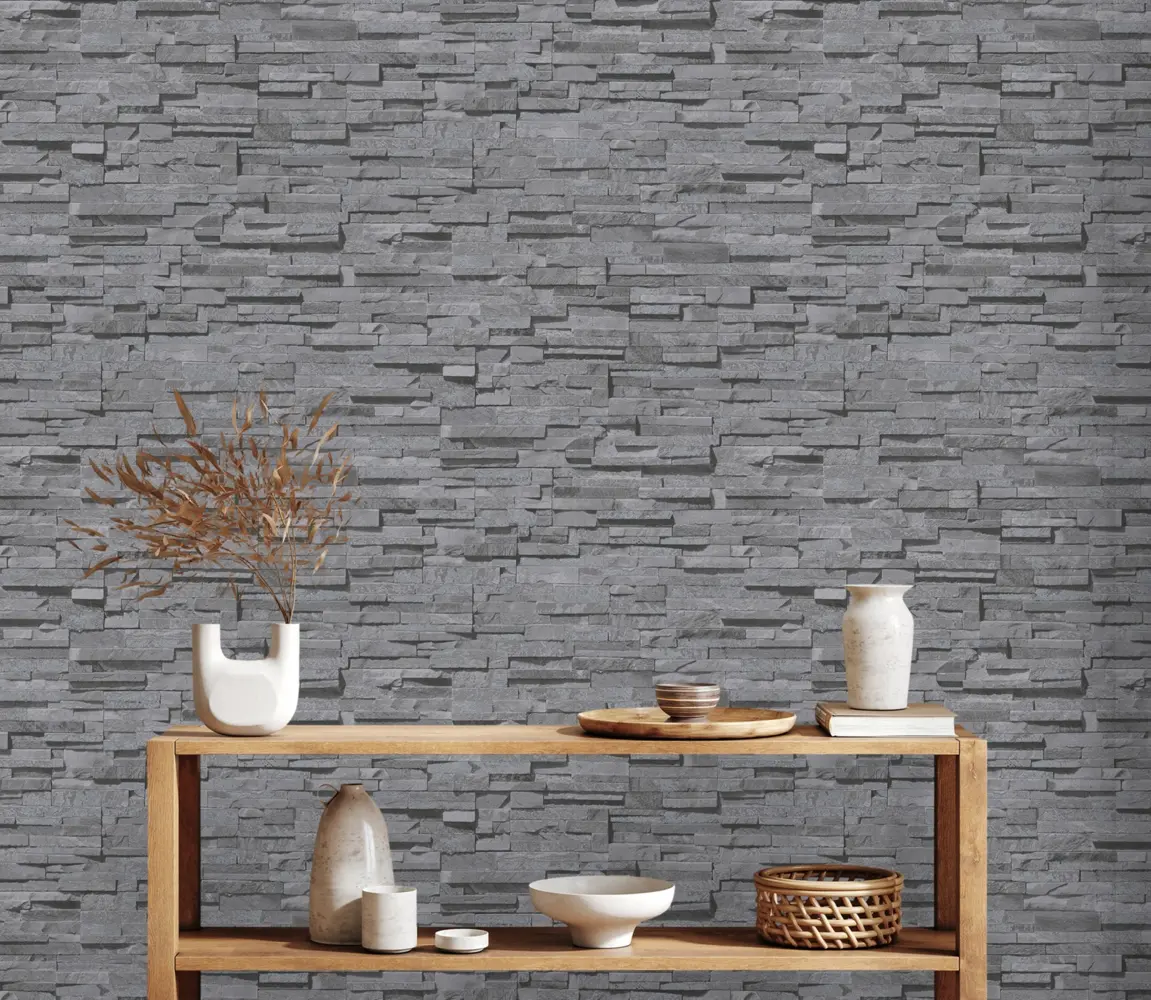Dank des strapazierfähigen Vliesträgers ist die Tapete besonders langlebig und pflegeleicht. Sie überzeugt mit sehr guter Lichtbeständigkeit und ist scheuerbeständig – so bleibt sie auch in stark beanspruchten Bereichen wie Küche oder Badezimmer lange ansehnlich. Das Maß beträgt 10,05 Meter in der Länge bei einer Breite von 53 Zentimetern. Die versetzte Rapportierung (64/32 cm) unterstreicht die natürliche Steinstruktur und sorgt für ein harmonisches Wandbild.
