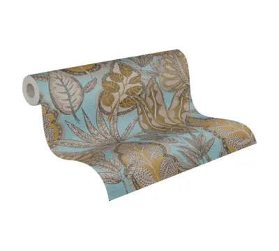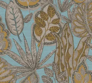 Die Vinyltapete Famous Garden 393464 von A.S. Création vereint florales Design mit moderner Funktionalität. In hellblau, gelb und braun gehalten, bringt sie mit ihrem dezenten Blattmuster eine natürliche und lebendige Note in Ihre Wohnräume. Die Oberfläche ist matt und leicht strukturiert, was für eine angenehme Haptik sowie eine elegante Optik sorgt.