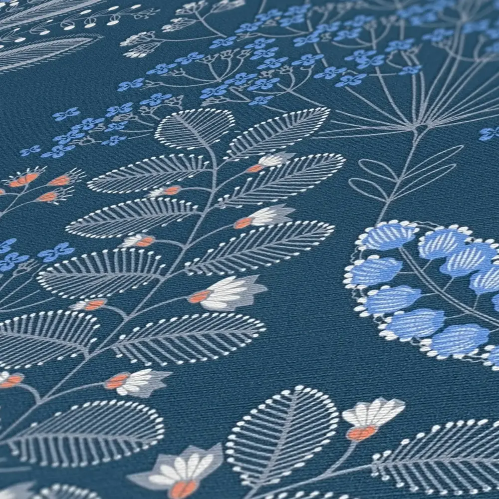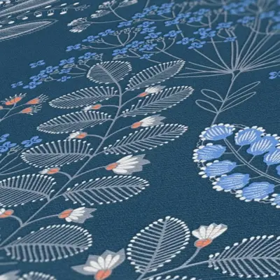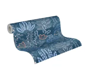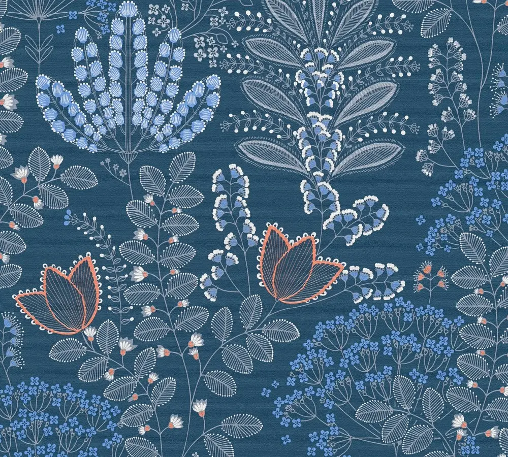 Die livingwalls Vinyltapete 393494 aus der Kollektion "Famous Garden" von A.S. Création vereint modernes Design mit floraler Eleganz. Das stilvolle Blumenmuster in Blau, Weiß, Grau und Orange sorgt für ein frisches und wohnliches Ambiente. Die matte, leicht strukturierte Oberfläche unterstreicht die hochwertige Optik der Tapete.