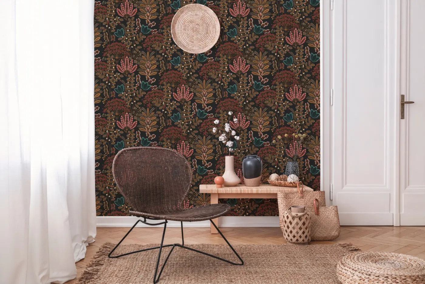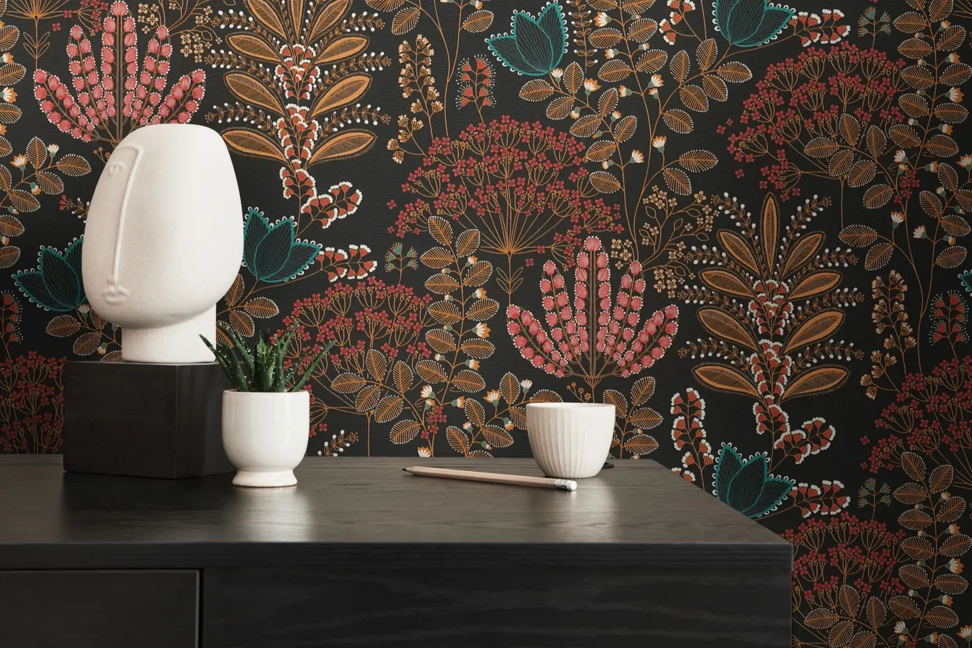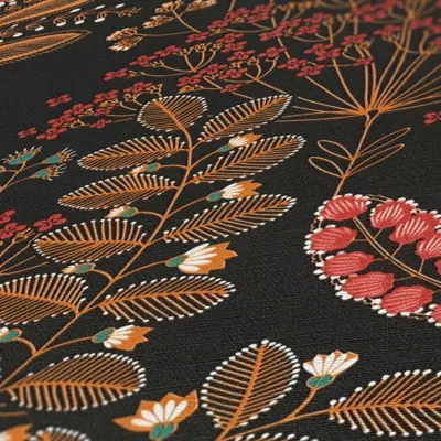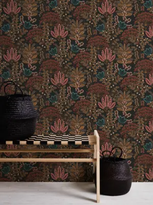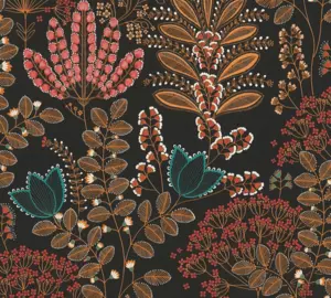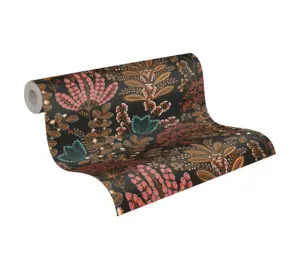 Verleihen Sie Ihren Räumen einen besonderen Charakter mit der Vinyltapete aus der Famous Garden Kollektion von A.S. Création. Das edle, floral inspirierte Design kombiniert schwarze Grundtöne mit auffälligen Farben wie Türkis, Orange und Rot und sorgt damit für ein ausdrucksstarkes Ambiente.
