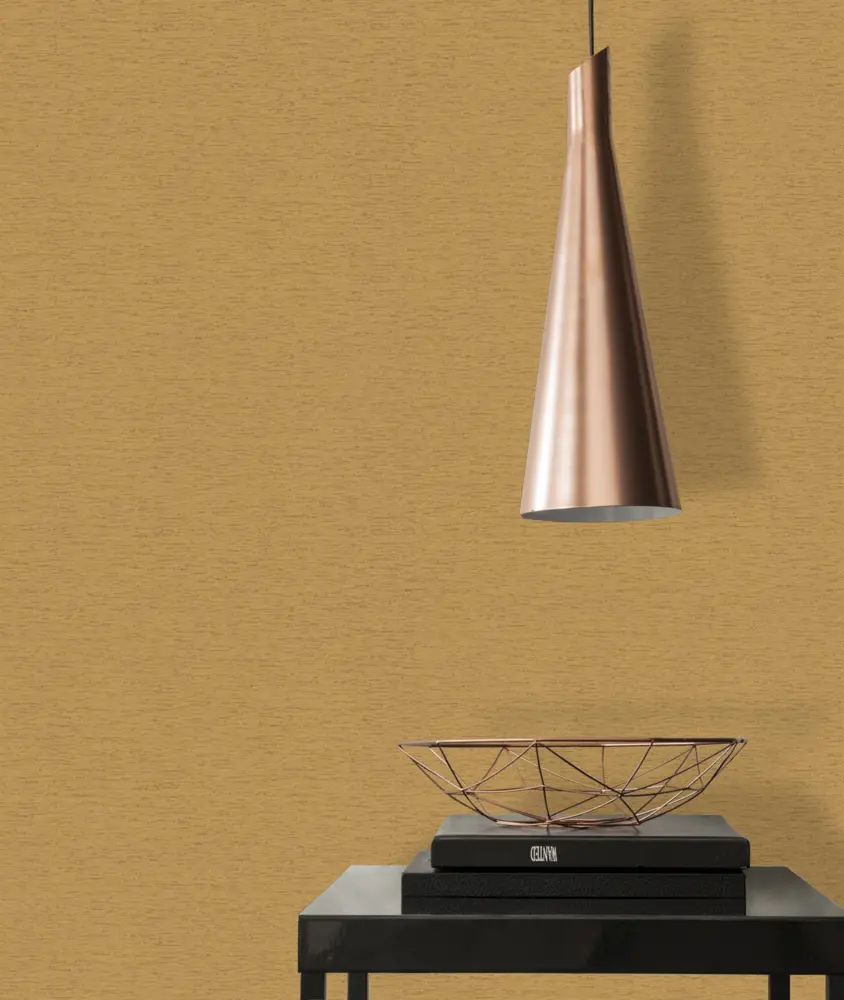 Die livingwalls Vinyltapete 393516 aus der Kollektion Famous Garden von A.S. Création setzt elegante goldbraune und gelbe Akzente. Mit ihrem unifarbenen, leicht strukturierten Design und der dezenten, matten Oberfläche verleiht sie jedem Raum eine edle und moderne Atmosphäre.