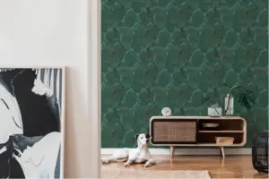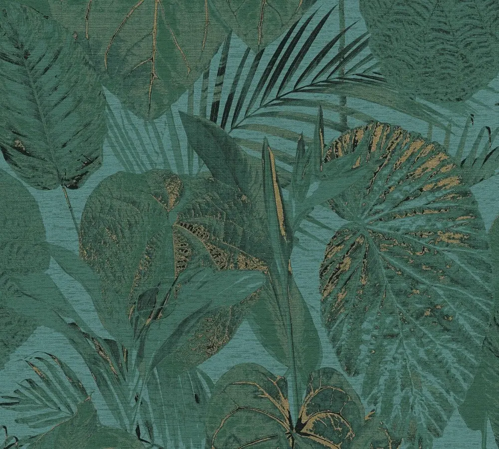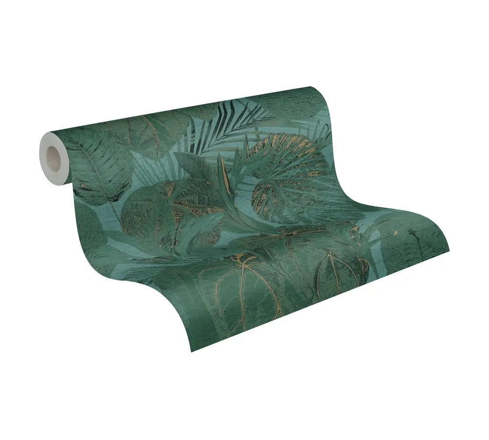 Vinyltapete Famous Garden 393553 in Petrol-Grün-Gold