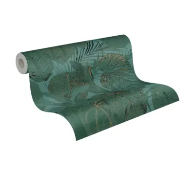 Die Vinyltapete Famous Garden 393553 von A.S. Création verwandelt jeden Raum in eine stilvolle Wohlfühloase. Das exotische Dschungelmotiv präsentiert sich in modernem Petrol und Grün mit edlen goldfarbenen Akzenten und setzt eindrucksvolle Akzente an Wand oder Decke. Die leicht strukturierte und leicht glänzende Oberfläche verleiht der Tapete ein ansprechendes, lebendiges Erscheinungsbild.