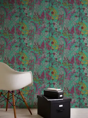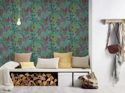 Die Vliestapete "Floral Impression" 377516 von A.S. Création setzt stilvolle Akzente in jedem Raum. Mit einem ansprechenden floralen Muster in harmonischen Grüntönen, leuchtendem Violett, sanftem Grau sowie feinen Rot- und Gelbtönen schafft sie ein inspirierendes Ambiente. Die matte Oberfläche und die glatte Struktur sorgen für eine elegante, moderne Optik.