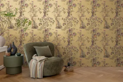 Die Vliestapete History of Art 2 (Hersteller-Nr. 790432) von A.S. Création kombiniert eine elegante Blatt- und Floraloptik mit einer edlen Farbwirkung in Grün und Gold. Das Zusammenspiel aus matten und dezent glänzenden Partien schafft Tiefe und verleiht Wänden eine hochwertige, dekorative Präsenz – ideal für stilvolle Wohn- und Schlafbereiche sowie repräsentative Flure.