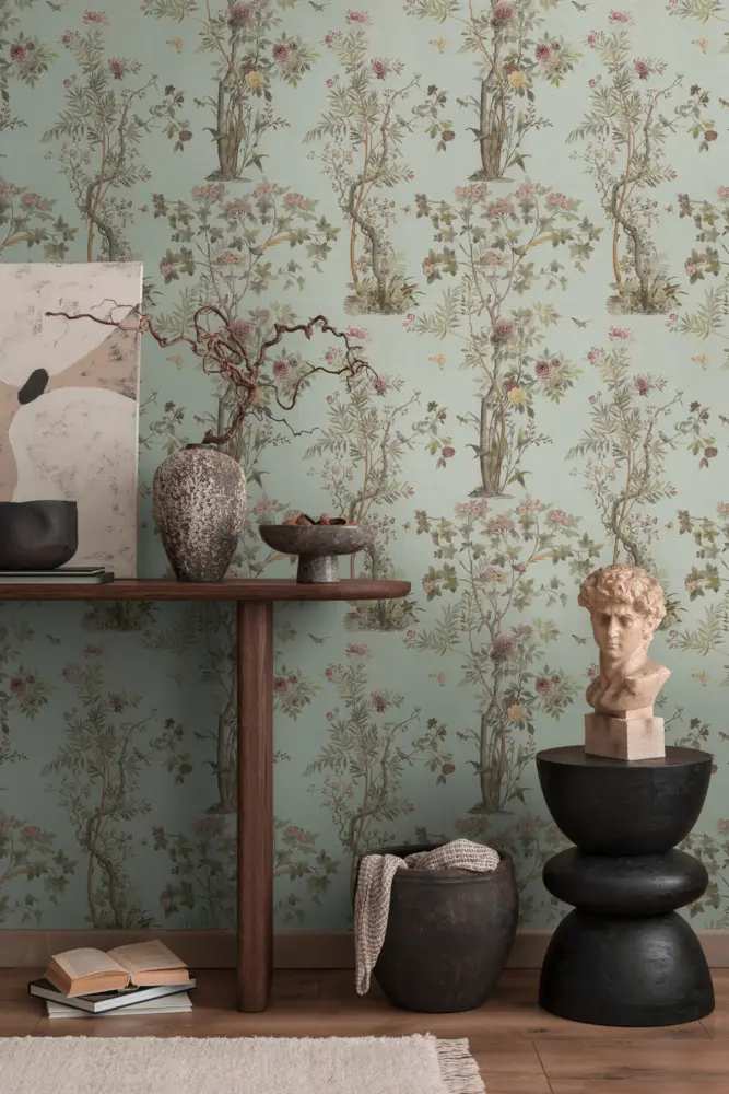 Die Vliestapete History of Art 2 (Herstellernummer 790435) von A.S. Création bringt mit ihrer floralen Blätter-Optik eine elegante, natürliche Atmosphäre an die Wand. Die Kombination aus Braun und Grün wirkt warm und zugleich frisch – ideal, um Wohn- und Schlafbereiche stilvoll zu gestalten.