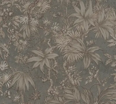 Die History of Art 2 Vliestapete 790473 von A.S. Création bringt eine ausdrucksstarke florale Dschungel-Optik an die Wand und wirkt zugleich stilvoll und modern. Die Farbgebung in Grau und Braun lässt sich vielseitig kombinieren und sorgt für eine ruhige, hochwertige Raumwirkung.