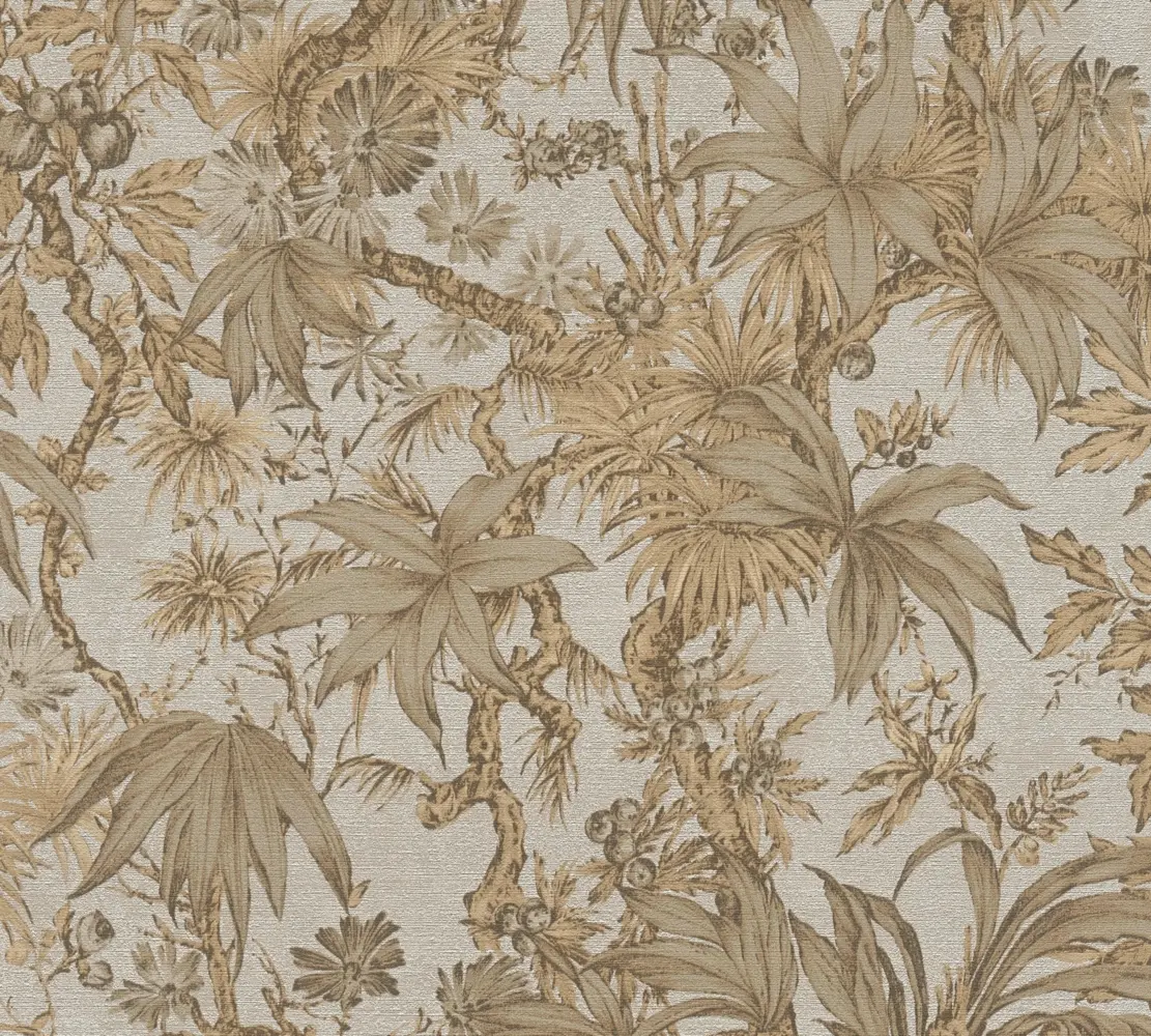 Die A.S. Création History of Art 2 Vliestapete 790474 kombiniert eine florale Dschungel-Optik mit einer eleganten Farbwirkung in Beige und Grau. Das Zusammenspiel aus matt & glänzend verleiht der Wand eine lebendige Tiefe und sorgt je nach Lichteinfall für dezente Highlights.
