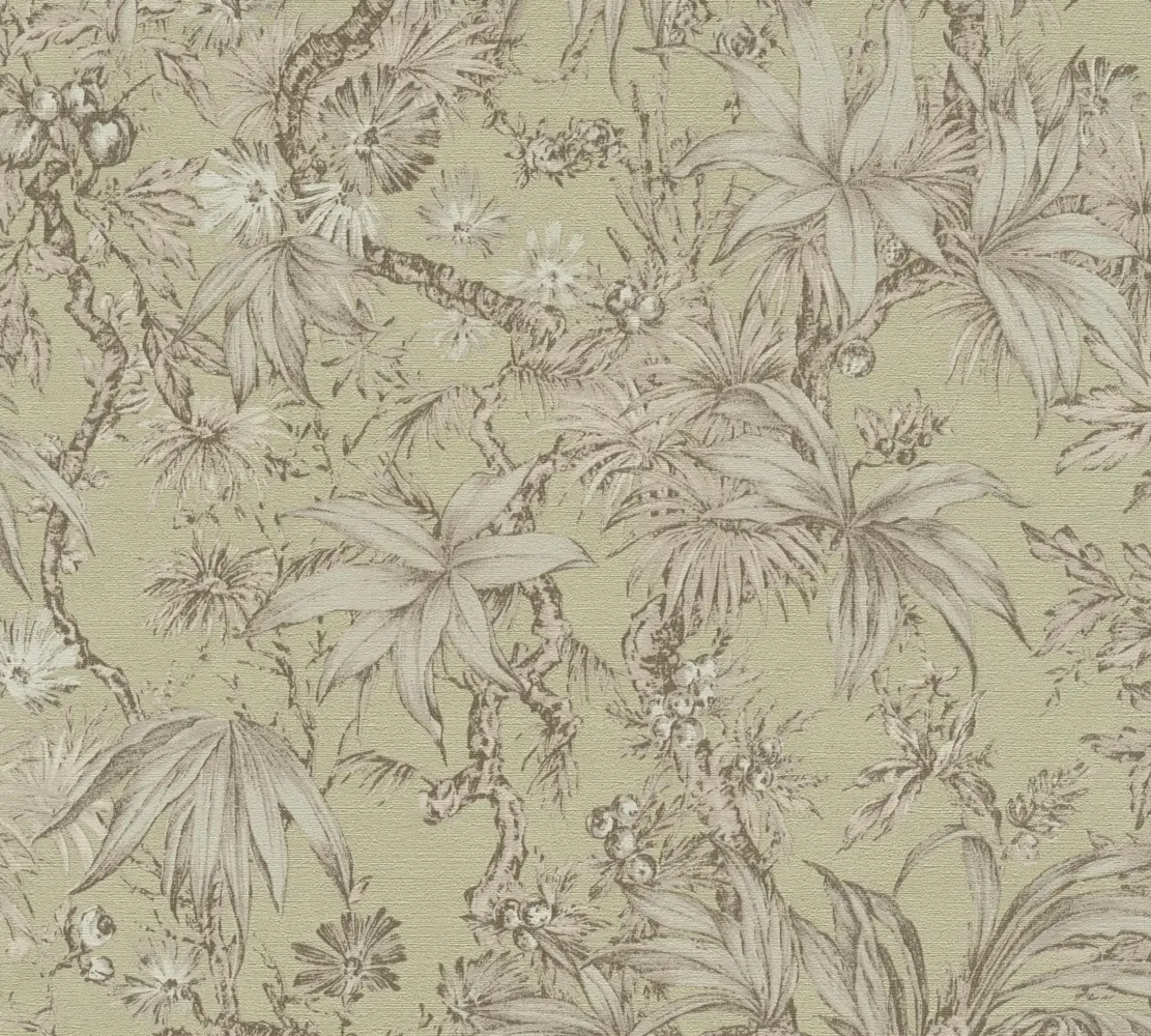 Die Vliestapete History of Art 2 (Herstellernummer 790475) von A.S. Création kombiniert einen floralen Dschungel-Look mit einem modernen Farbspiel in Grau und Grün. Durch die wechselnde Wirkung aus matten und glänzenden Partien entstehen dezente Lichtreflexe, die Wänden Tiefe und Charakter verleihen.