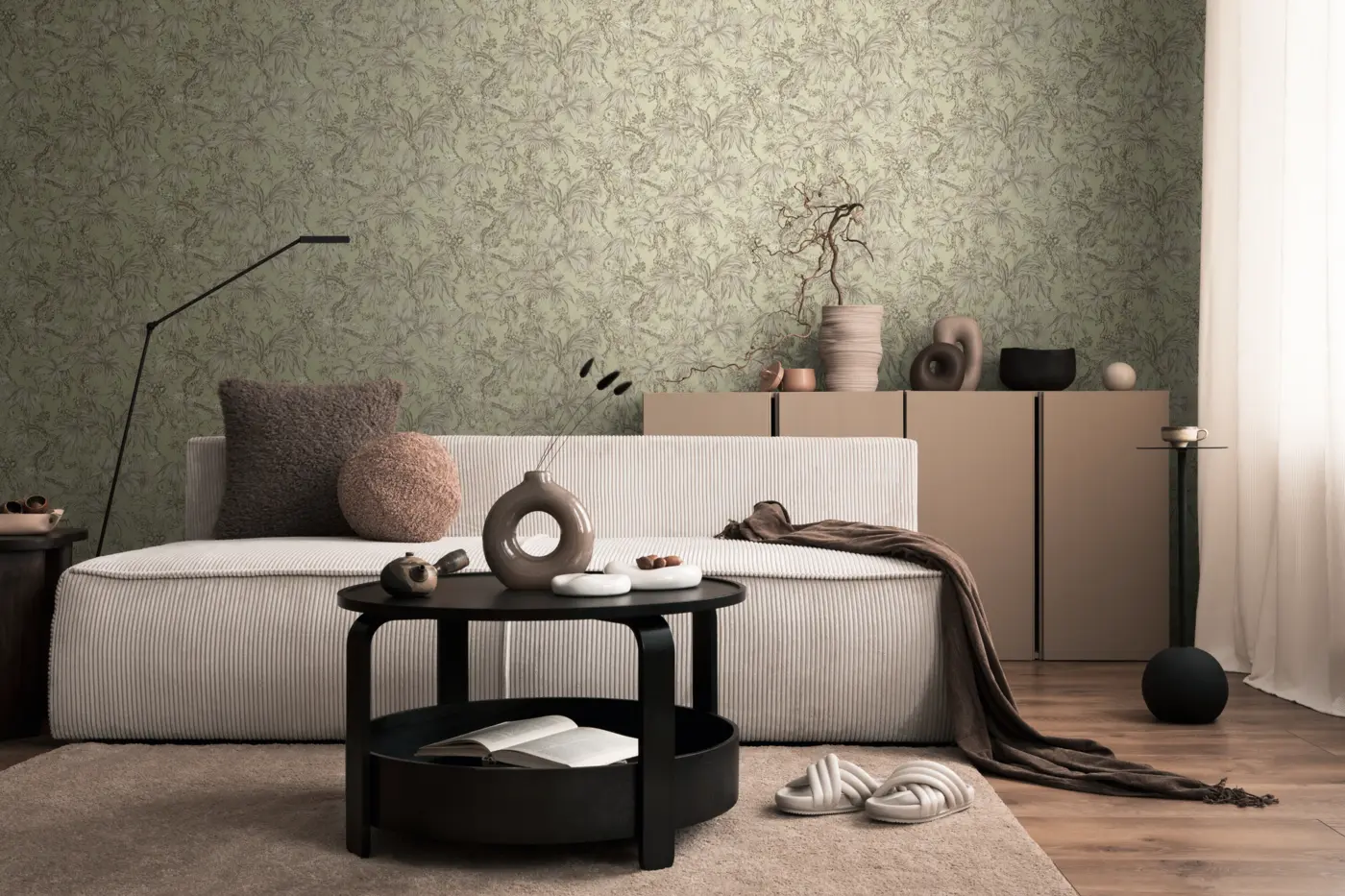 Die leicht strukturierte Vinyl-Oberfläche unterstreicht das Motiv und sorgt für eine hochwertige, lebendige Anmutung. Ob als Akzentwand oder als durchgängige Gestaltung: Das Muster wirkt natürlich, stilvoll und bringt eine ruhige, harmonische Atmosphäre in Wohn- und Arbeitsbereiche.