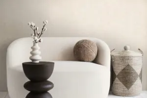 Die Oberfläche ist leicht strukturiert und spielt mit matten sowie glänzenden Elementen. Je nach Lichteinfall wirkt die Wand mal sanft zurückhaltend, mal mit dezenter Tiefe – ideal, um Räumen Wärme und Charakter zu geben, ohne dominant zu sein.