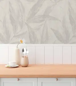 Die A.S. Création Hygge III Vliestapete 790964 bringt eine ruhige, skandinavisch inspirierte Atmosphäre in Ihre Räume. Das florale Blattmotiv in Grau und Weiß wirkt harmonisch und modern zugleich und eignet sich besonders für Wohn- und Schlafbereiche sowie für stilvolle Akzentwände.
