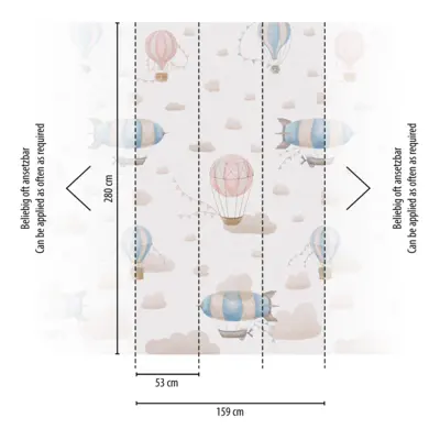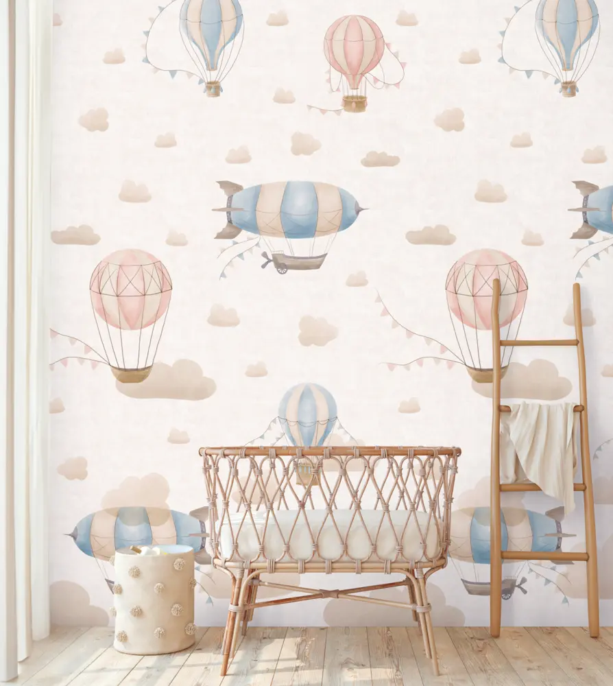 Ob hinter Bett, Wickelkommode oder Spielecke: Die dezenten Farben und das luftige Motiv unterstützen ein geborgenes Ambiente und lassen sich hervorragend mit hellen Möbeln sowie natürlichen Materialien kombinieren.