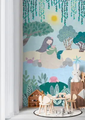 Mit der Vliestapete Lilly & Luis von A.S. Création (Herstellernummer 770671) gestalten Sie Wände im Kinderzimmer fantasievoll und zugleich modern. Das Motiv mit Meerjungfrau und Fischen bringt eine verspielte Unterwasserwelt in den Raum, während die matte, glatte Oberfläche für ein ruhiges, hochwertiges Gesamtbild sorgt.