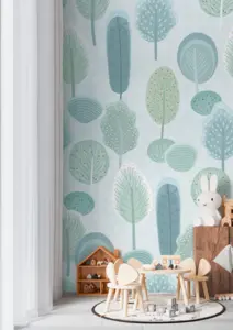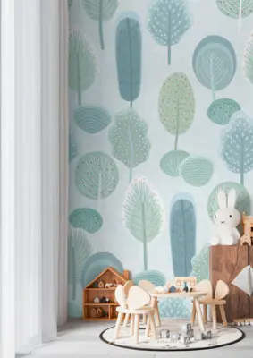 Die Vliestapete A.S. Création Lilly & Luis (Herstellernummer 770711) bringt mit ihrem ruhigen Wald- und Baumdesign eine natürliche, kindgerechte Atmosphäre an Wand und Decke. Die matte, glatte Oberfläche wirkt modern und lässt sich vielseitig kombinieren – besonders harmonisch mit sanften Blau- und Grüntönen.