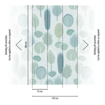 Mit dem Maß von 2,80 m x 1,59 m deckt die Tapete eine großzügige Fläche ab und unterstützt eine ruhige, gleichmäßige Wandwirkung. Der ansatzfreie Rapport erleichtert die Verarbeitung, da das Motiv ohne sichtbare Musterversätze angesetzt werden kann.