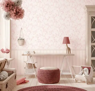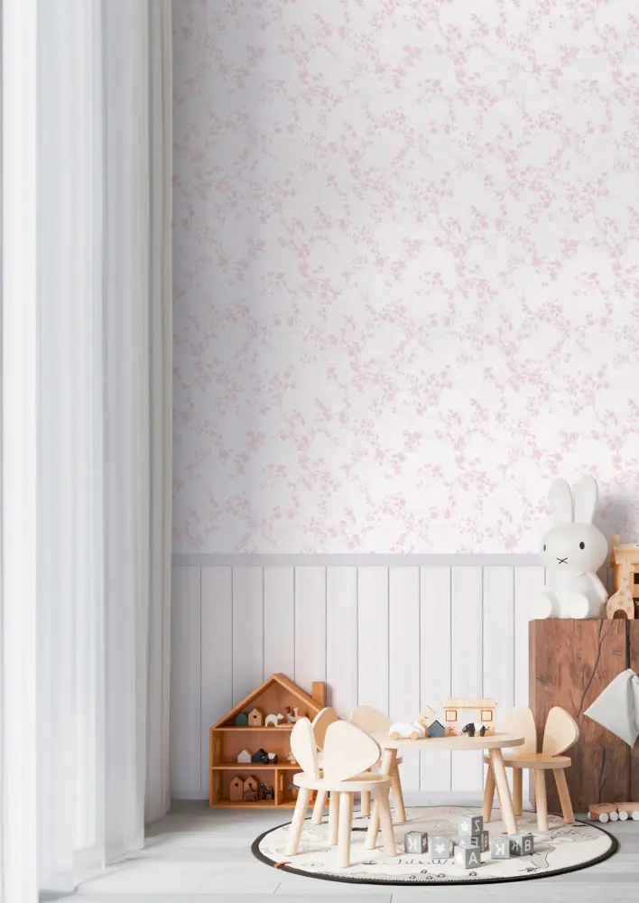Die Vliestapete 770751 aus der Kollektion Lilly & Luis von A.S. Création sorgt mit ihren sanften Creme- und Rosatönen für eine freundliche, ruhige Raumwirkung. Das Motiv aus Ästen und kleinen Blümchen passt besonders gut ins Kinderzimmer, wirkt aber ebenso harmonisch in Spielbereichen oder als dezenter Akzent an einzelnen Wänden.