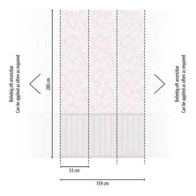 Als Vliestapete auf Vlies überzeugt sie durch eine stabile Qualität und eine unkomplizierte Handhabung. Mit den Maßen 2,80 m x 1,59 m (Breite 1590 mm) eignet sie sich gut für größere Flächen. Der Rapport ist ansatzfrei, wodurch beim Anbringen kein Musterabgleich notwendig ist und das Motiv sauber durchläuft.