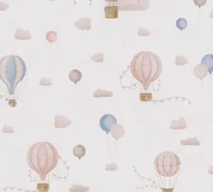 Das Design im Stil Wolken und Luftballons bringt Leichtigkeit in den Raum, ohne zu unruhig zu wirken. Durch den versetzten Rapport von 64 / 32 cm entsteht ein lebendiges, stimmiges Gesamtbild – auch auf größeren Wandflächen.