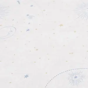 Das Motiv ist auf Weltall und Sterne abgestimmt und wirkt dabei angenehm kindgerecht. Dank geradem Rapport von 53 cm entsteht ein gleichmäßiges, ordentliches Gesamtbild – ideal für eine Akzentwand oder für eine durchgängige Gestaltung.
