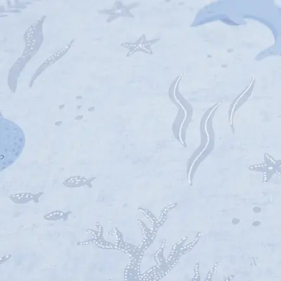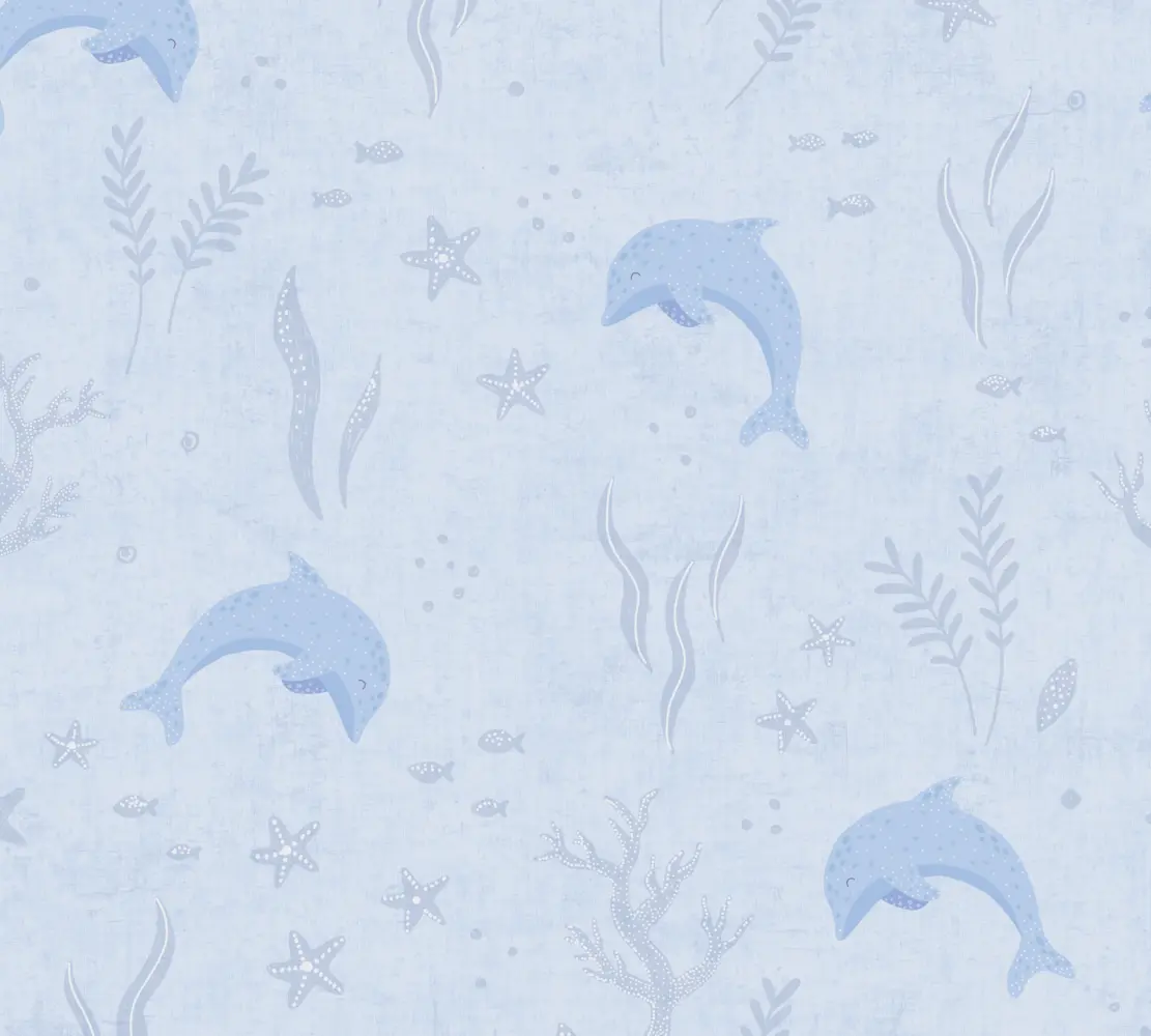 Die Tapete verbindet ein verspieltes Fische- und Unterwasser-Design mit einer matten, glatten Oberfläche. So entsteht ein harmonisches Gesamtbild, das nicht überlädt und dennoch ein liebevolles Highlight im Raum setzt.