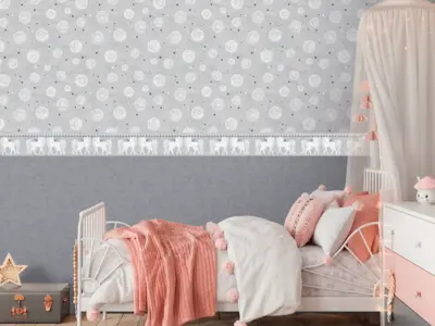 Die Vliestapete 771391 aus der Kollektion Lilly & Luis von A.S. Création bringt mit ihrem ruhigen Kreis- und Punkte-Design eine sanfte, kindgerechte Atmosphäre an die Wand. Die matte, glatte Oberfläche in Grau mit Rosa wirkt modern und freundlich zugleich und eignet sich ideal für Kinderzimmer sowie für dezente Akzentflächen.