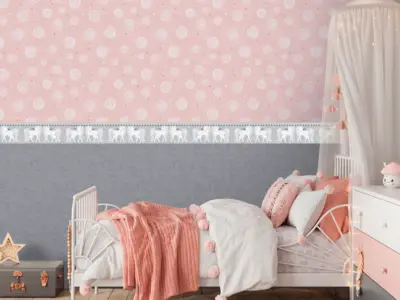 Die A.S. Création Vliestapete Lilly & Luis 771392 setzt mit ihrem zarten Rosa-Weiß und dem verspielten Kreis- und Punkte-Design freundliche Akzente im Kinderzimmer. Die matte, glatte Oberfläche wirkt modern und ruhig zugleich und unterstützt ein harmonisches Raumgefühl an Wand und Decke.