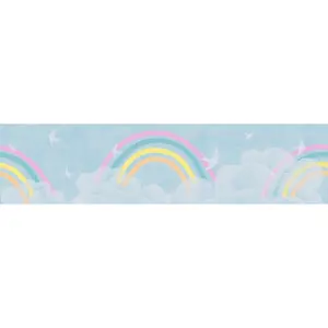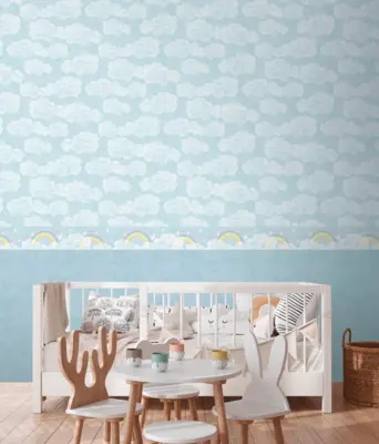 Mit der Bordüre 771451 aus der Kollektion Lilly & Luis von A.S. Création gestalten Sie Wände schnell und stilsicher. Das Motiv mit Wolken und Regenbogen setzt einen freundlichen, beruhigenden Akzent und passt besonders gut ins Kinderzimmer.