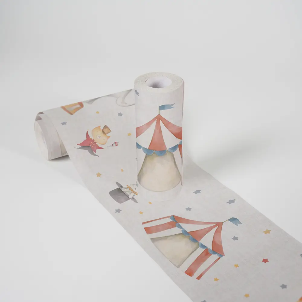Die Bordüre aus der Kollektion Lilly & Luis von A.S. Création setzt dekorative Akzente an Wand und Decke und passt besonders gut zu fröhlichen Themenwelten wie Zirkus oder Kinderzimmer. Die matte Optik und die glatte Oberfläche sorgen für ein ruhiges, sauberes Erscheinungsbild, das sich leicht mit Tapeten und uni gestrichenen Flächen kombinieren lässt.
