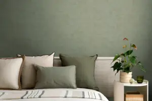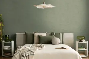 Als Unitapete mit textilem Charakter funktioniert das Design sowohl großflächig als auch als Akzentwand. Besonders harmonisch wirkt die grüne Nuance in Kombination mit hellen Hölzern, Naturmaterialien und neutralen Tönen – für ein ausgewogenes, wohnliches Ambiente.