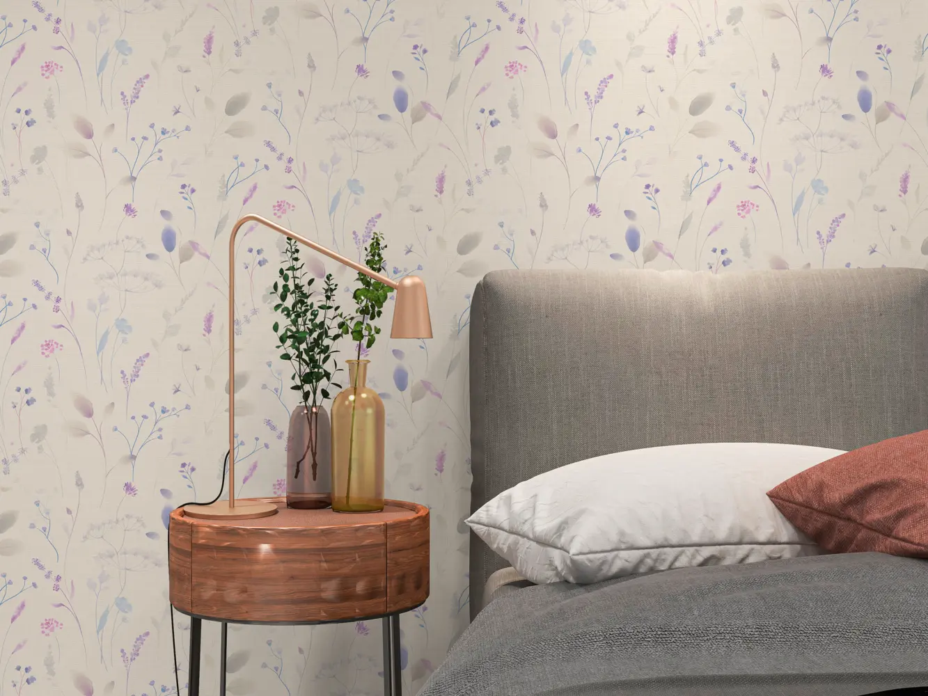 Die Vliestapete A.S. Création Pintwalls III 791702 kombiniert eine helle, ruhige Grundwirkung in Weiß mit eleganten Akzenten in Violett. Das florale Gräser-Design wirkt modern und zugleich zeitlos; die matte Oberfläche und die leicht strukturierte Haptik verleihen der Wand ein hochwertiges Finish und setzen stilvolle Akzente in Wohn- und Schlafräumen, Flur oder Arbeitsbereich.