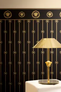 Die A.S. Création Versace 6 Vliestapete 791312 steht für ausdrucksstarke Wandgestaltung im ikonischen Versace-Look. Barocke Ornamente, florale Details und der markante Medusakopf setzen in Schwarz und Gold ein luxuriöses Statement. Die glänzende, leicht strukturierte Oberfläche erzeugt elegante Lichtreflexe und verleiht Räumen spürbare Tiefe.