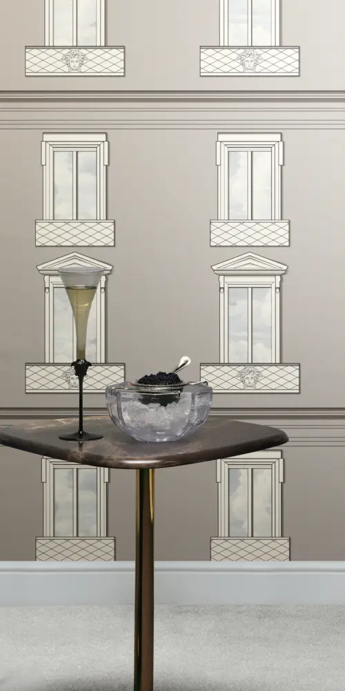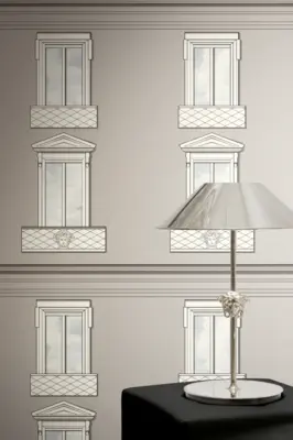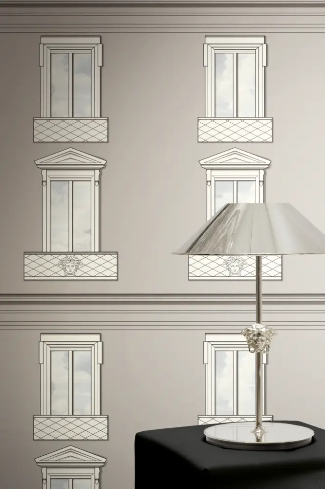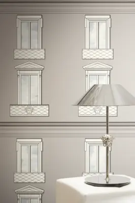 Die A.S. Création Versace 6 Vliestapete 791321 bringt den charakteristischen Versace-Look stilvoll an die Wand. Das neo-klassische Dessin greift architektonische Elemente wie Fassade und Fenster auf und wird durch markante Medusakopf-Anklänge veredelt. Die Kombination aus Grau und Weiß wirkt elegant und ausbalanciert, während die matte Optik dem Raum eine moderne, hochwertige Anmutung verleiht.