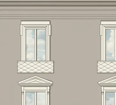 - Designtapete, Neo-Klassik, Medusakopf, Fenster, Fassade