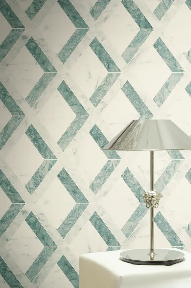 - Geometrische Tapete, Grafik, Rauten, Marmor, Versace-Logo