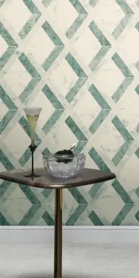 Die A.S. Création Versace 6 Vliestapete 791332 bringt einen ausdrucksstarken, eleganten Look an Wand und Decke. Das Design verbindet grafische Geometrie und Rauten-Elemente mit einer marmorierten Anmutung und dem ikonischen Versace-Logo. In Grün und Weiß wirkt das Gesamtbild modern, hochwertig und zugleich angenehm ruhig – ideal für Akzentwände oder stilvolle Raumkonzepte.
