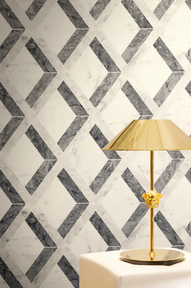 - Geometrische Tapete, Grafik, Rauten, Marmor, Versace-Logo