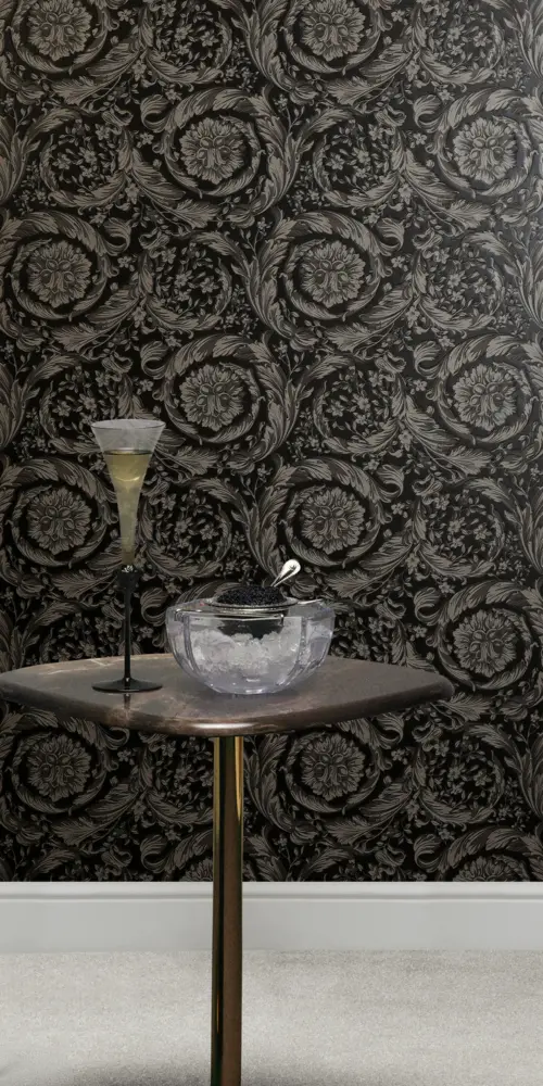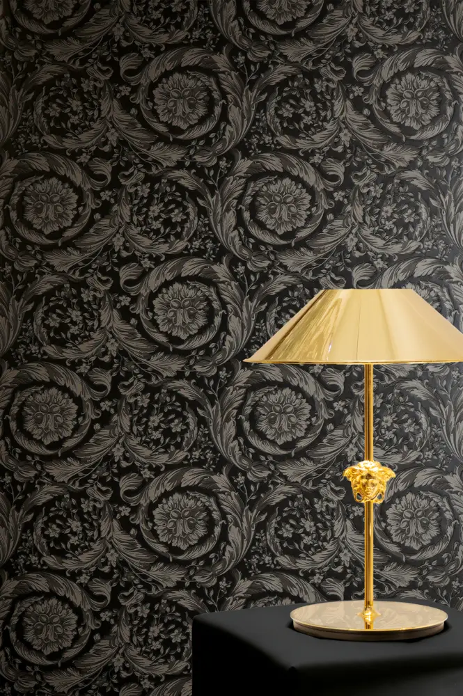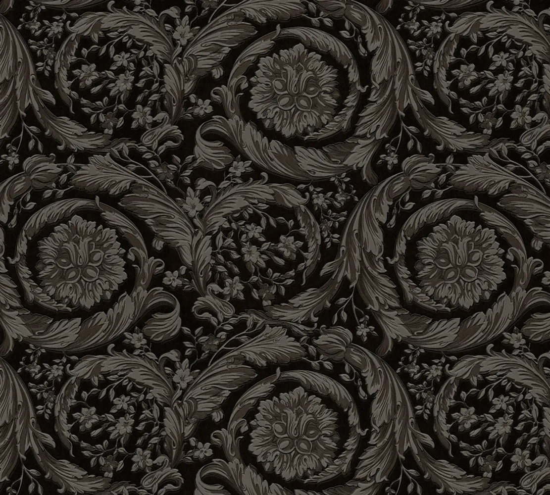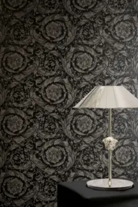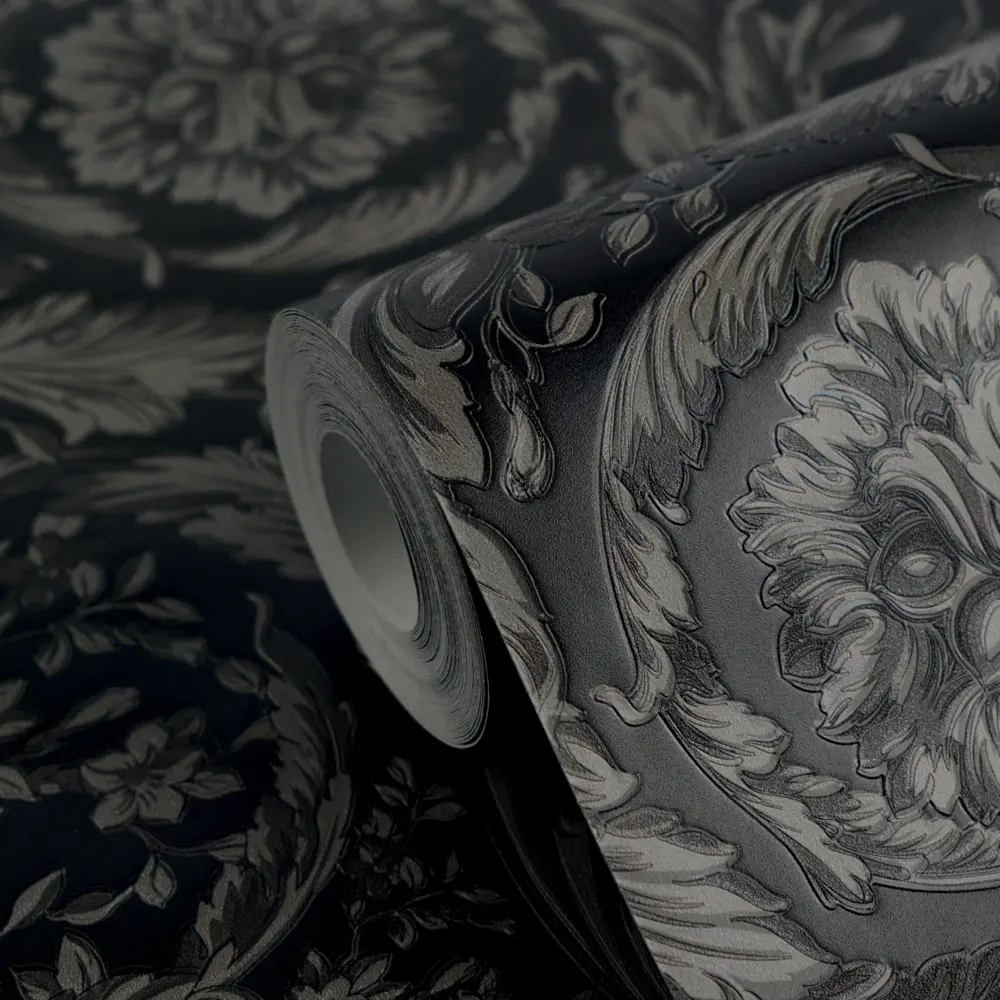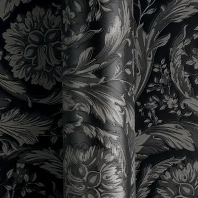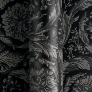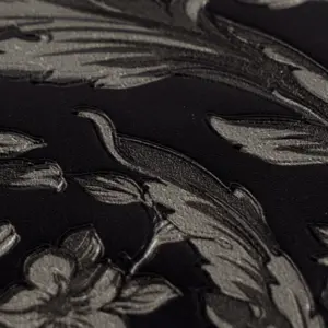 Die A.S. Création Versace 6 Vliestapete 791352 verbindet eine markante grau-schwarze Farbwirkung mit einer edlen, leicht glänzenden Oberfläche. Die strukturierte Vinyl-Oberfläche sorgt für eine hochwertige Haptik und unterstreicht den charaktervollen Stil mit barocken und neo-klassischen Anklängen sowie floralen Ranken-Elementen.