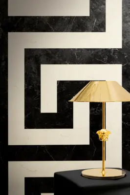 Die Vliestapete A.S. Creation Versace 6 (791741) steht für eine ausdrucksstarke, luxuriöse Wandgestaltung mit klarer grafischer Linie. Das geometrische Mäander-Design in Schwarz und Weiß wirkt modern und zugleich zeitlos. Durch die Kombination aus matten und glänzenden Bereichen entsteht eine elegante Tiefenwirkung, die je nach Lichteinfall subtil variiert.