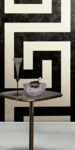 Als Luxustapete mit grafischer Wirkung passt dieses Modell besonders gut in Wohn- und Essbereiche, Flure oder repräsentative Räume. Der kontrastreiche Schwarz-Weiß-Look setzt klare Akzente und ergänzt sowohl moderne Interieurs als auch klassisch-elegante Konzepte.