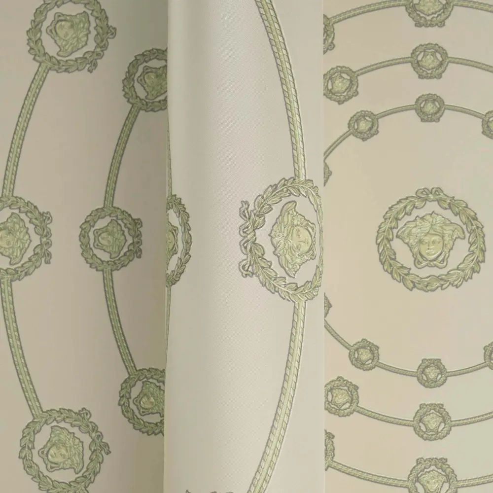 Die A.S. Création Versace 6 Vliestapete 791754 verbindet ikonische Versace-Ästhetik mit einer modernen, grafischen Wirkung. Das Zusammenspiel aus Grau und Grün, ergänzt durch einen leicht glänzenden Oberflächen-Effekt, setzt Wände stilvoll in Szene und verleiht Räumen eine edle, repräsentative Atmosphäre.